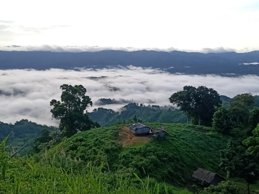 ভোরের আলো না ফুটতেই ঘুম থেকে উঠে সাথে একটি দা নিয়ে আবার পাহাড়ের চূড়ায় উঠতে লাগলাম। এবার উদ্দেশ্য হলো সূর্য়দয় দেখা করা ও সাথে ছেলেটির পারিবারিক জুম দেখা। শুনেছি সেখান থেকে নাকি কয়েকটি উপজেলা এক নজরে দেখতে পাওয়া যায়। বলতে বলতে সূর্য়দেব আসার সময় হল, ফুলসুমরি গাছটির পাতা গুলো তখন বাতাসের সাথে নাচছে। আর সেখান থেকে পূর্বের যে উপজেলাটি দেখা যায় তখনও সেটি সাদা মেঘে ডাকা ছিল। দক্ষিণ দিকটি অন্য একটি পাহাড় দেখা যায় যেটি ঘন জঙ্গলে ভরা আর উত্তরের দিকে একটি বড় পাহাড়ে গ্রাম দেখা যাচ্ছে, সেখানেও জুম চাষ করেছেন পাহাড়িরা। পশ্চিমের দিকটি থেকে কাপ্তাই লেক পরিষ্কার করে দেখা যায়, কি অপূর্ব সৃষ্টি!
